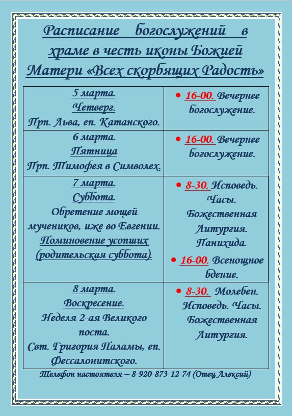 Расписание служб