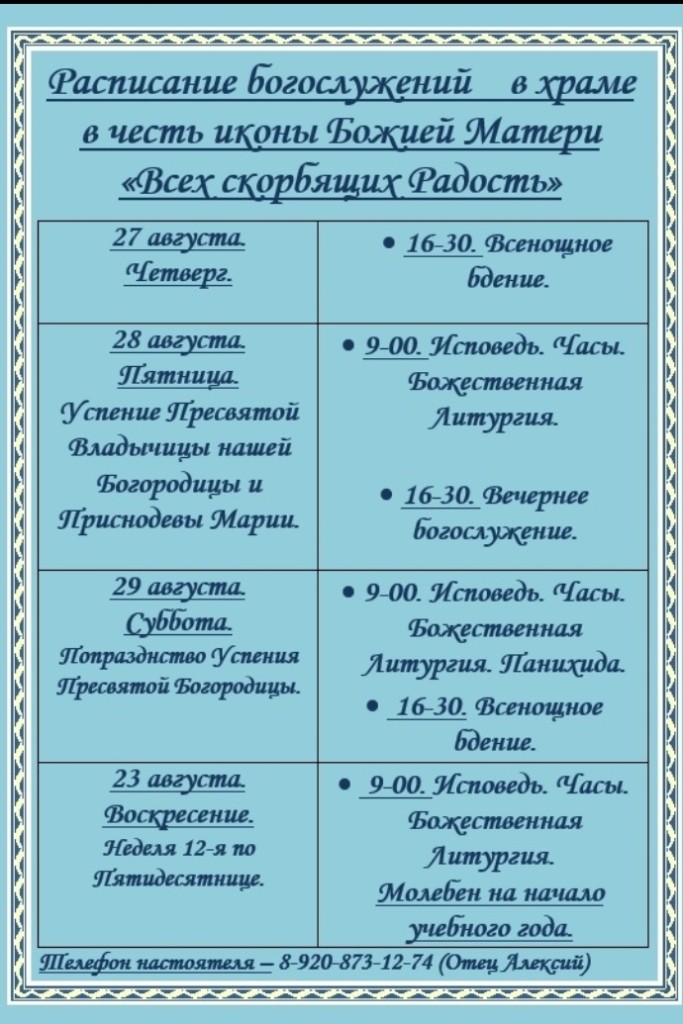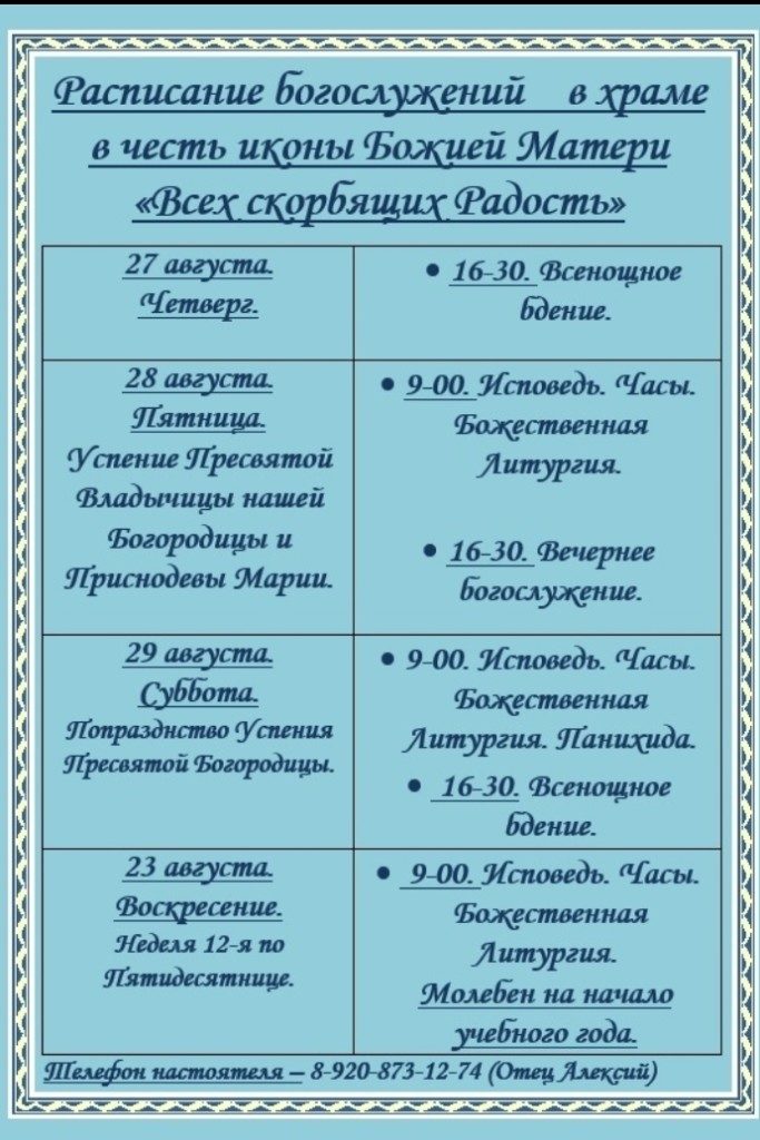 WhatsApp Image 2020-08-23 at 19.36.52 Полная ширина 683 × 1024 пикселей Расписание служб (0) (0) Предыдущее изображение Следующее изображение Добавить комментарий Отменить ответ Ваш e-mail не будет опубликован. Обязательные поля помечены *КомментарийИмя* Email* Сайт Нажмите галочку (защита от спама) Для того, чтобы иметь возможность комментировать, включите JavaScript в Вашем браузере.