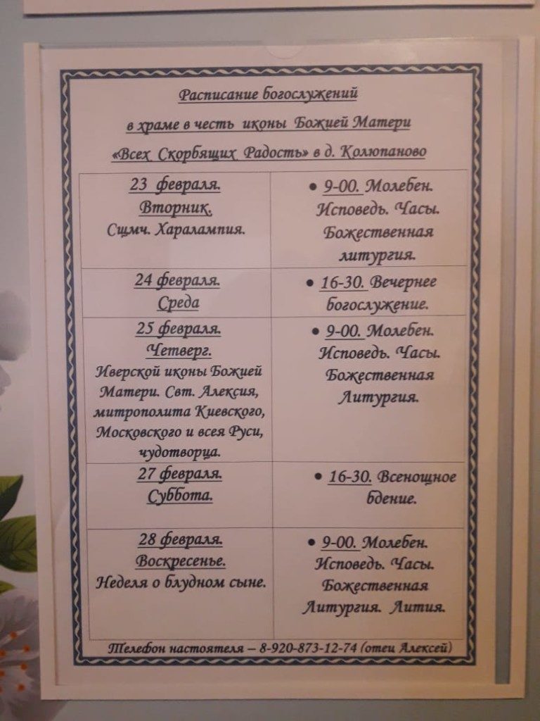 WhatsApp Image 2021-02-21 at 09.20.10 Полная ширина 768 × 1024 пикселей Расписание служб (0) (0) Предыдущее изображение Следующее изображение Добавить комментарий Отменить ответ Ваш e-mail не будет опубликован. Обязательные поля помечены *КомментарийИмя* Email* Сайт Нажмите галочку (защита от спама) Для того, чтобы иметь возможность комментировать, включите JavaScript в Вашем браузере.